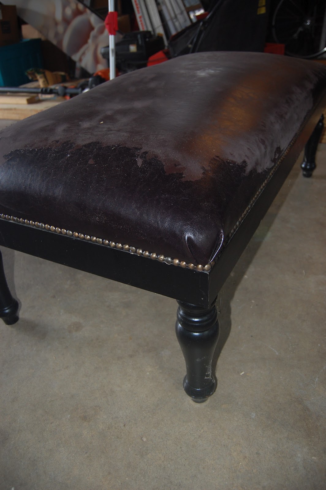 We woke up one morning to find a leather (actually, pleather: fake leather) bench in our garage. Turns out my father-in-law found it on the side of the road. He left it in our garage knowing I might want to do something with. He was right!